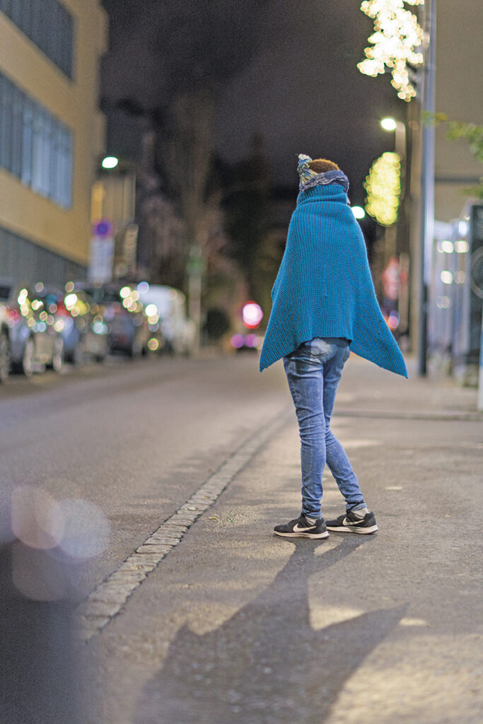 In einer Seitenstraße neben der Einfahrt eines unterirdischen Parkhauses treffen wir auf eine weitere Sexworkerin, der die Sozialarbeiterin Maud vom dropIn noch nie begegnet ist. Sie erhält die üblichen Utensilien und alle erdenklichen Informationen über die Anlaufstelle des Roten Kreuzes. Sie wirkt abwesend, hat sichtlich mit der Kälte zu kämpfen und ihre Artikulation im Gespräch scheint beeinträchtigt.