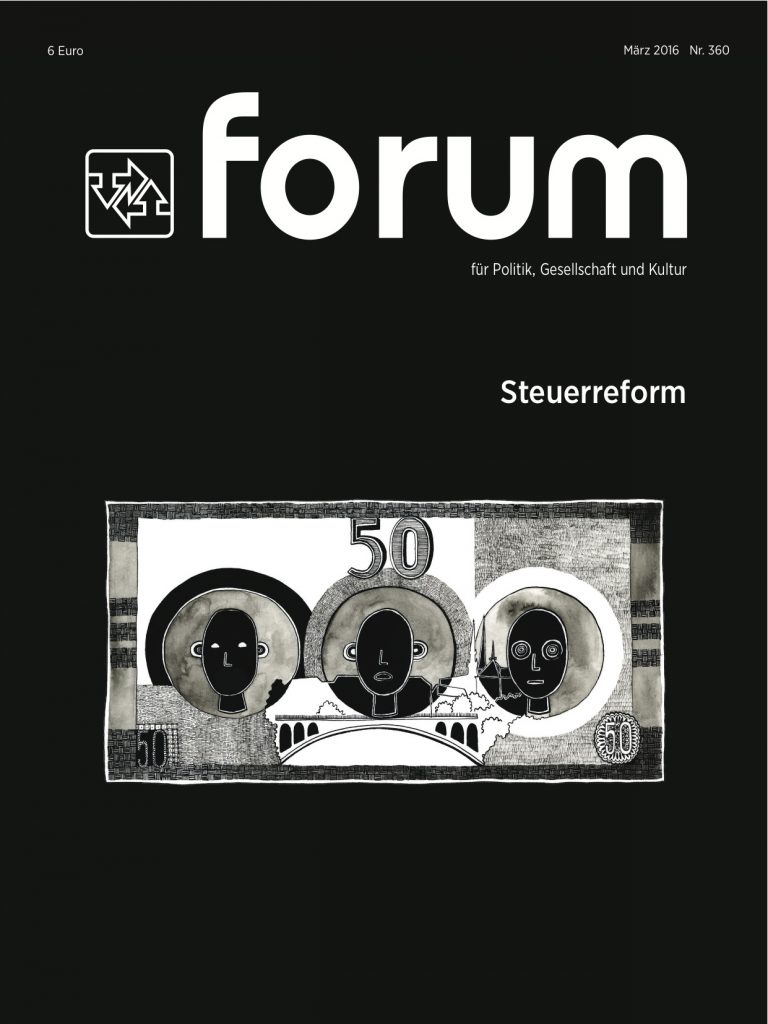 Das März-Dossier der Zeitschrift forum untersucht Aspekte der aktuellen Steuerreform mit besonderem Schwerpunkt auf Nachhaltigkeit und Gerechtigkeit. Zunächst analysiert Pierre Lorang die philosophischen Hintergründe der heutigen Steuerpolitik und Henri Kox beleuchtet die Auswirkungen des „Modell Luxemburg“ auf die Steuereinnahmen. Michel Cames beschäftigt sich mit der Energiesubventionierung im Großherzogtum und Ginette Jones erläutert die Vorteile der Individualbesteuerung. Laurent Uhoda von der Arbeitnehmerkammer geht seinerseits auf die massiven Steuervorteile für Kapitalbesitzer ein, während der Jurist Jean-Pierre Winandy sich in einem Interview zur Besteuerung der Unternehmen äußert.
